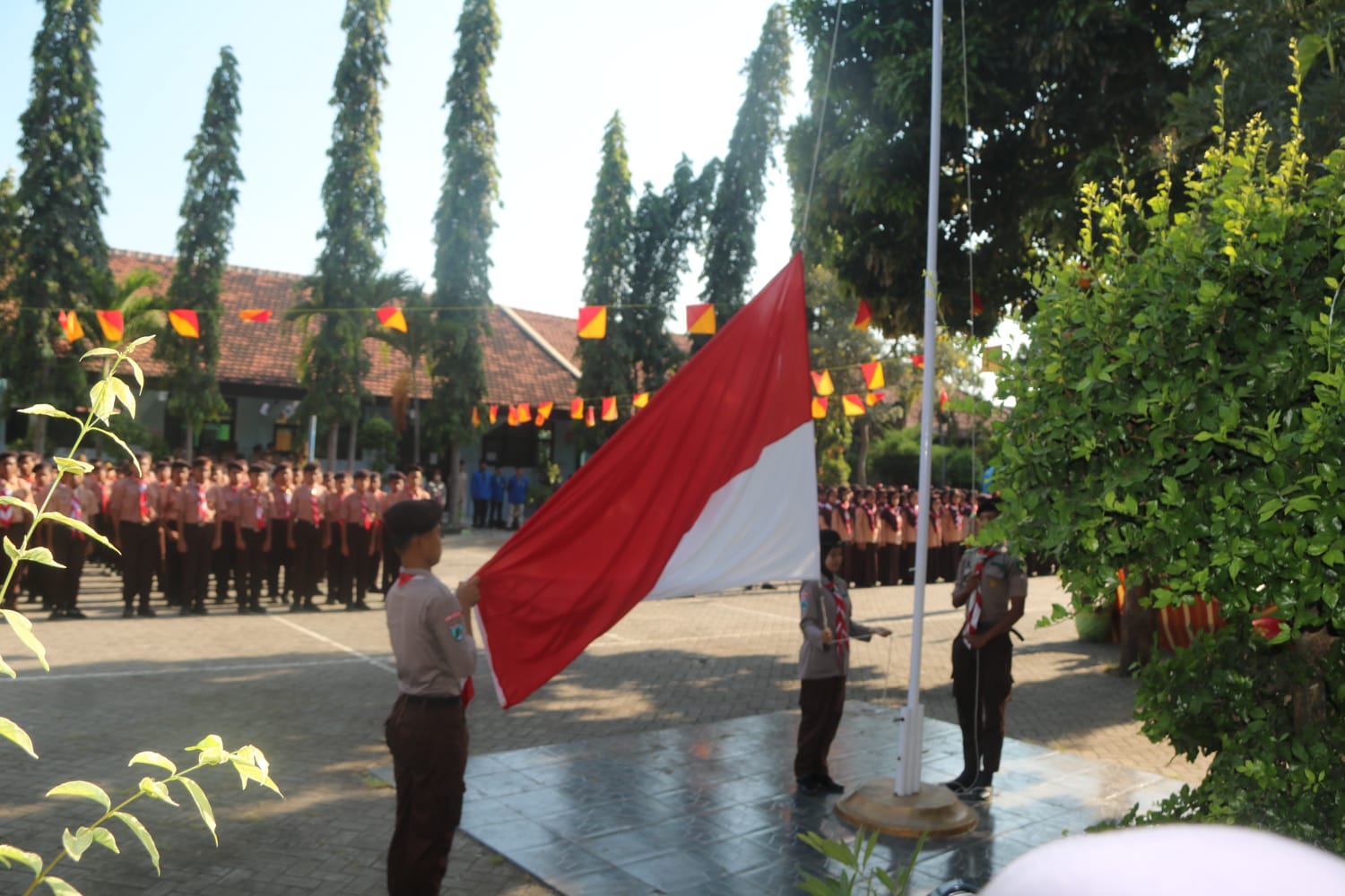 Upacara dimulai pukul 07.30 WIB dan diikuti oleh siswa, guru, dan tenaga kependidikan dari kedua madrasah. Bertindak sebagai pembina upacara adalah Kasi Pedma Kantor Kementerian Agama Kabupaten Probolinggo, Bapak Muhammad As’adi, M.Pd. Dalam amanatnya beliau menyampaikan pentingnya menanamkan nilai-nilai kepramukaan dalam kehidupan sehari-hari.